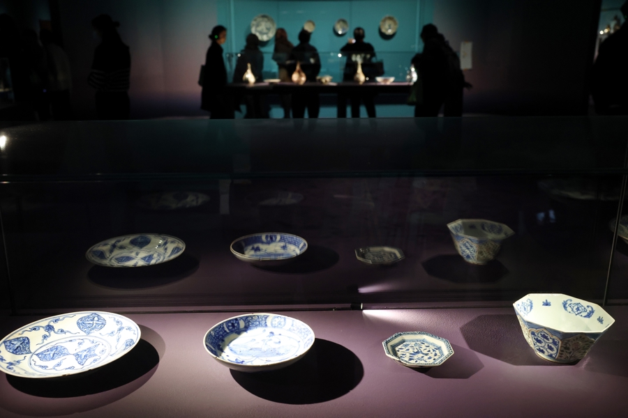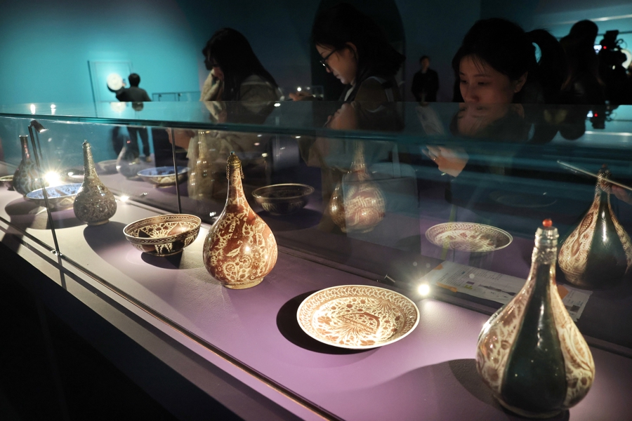 “图案的奇迹”展出的釉彩陶瓷。赖鑫琳 摄