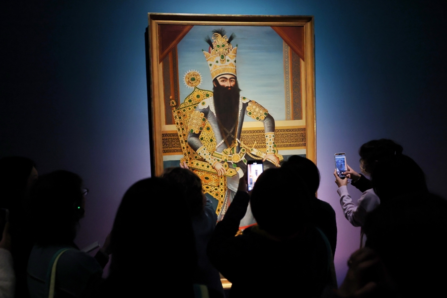 “图案的奇迹”展出的《法特赫-阿里·沙阿·卡扎尔肖像》。赖鑫琳 摄